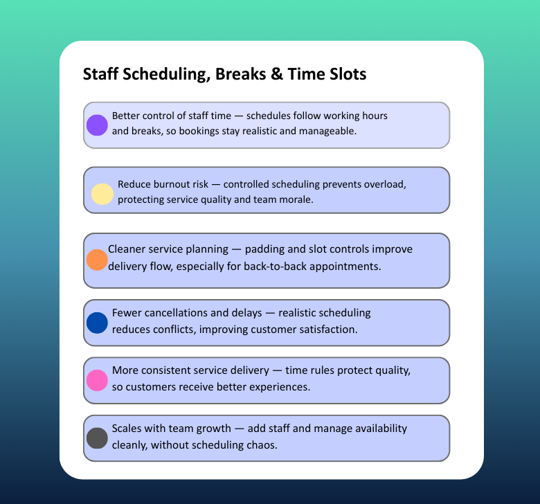 Staff Scheduling, Breaks & Time Slots