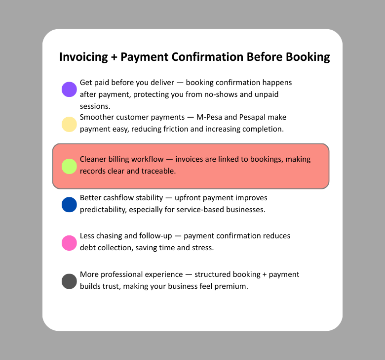 Invoicing + Payment Confirmation Before Booking