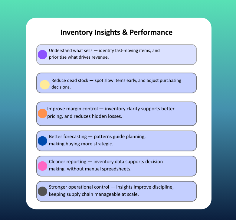Know what you have, what’s running low, and what’s moving fast—without guessing.