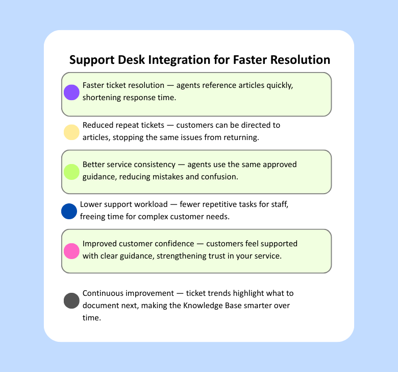 Link help content to support so issues resolve faster and repetitive tickets drop.