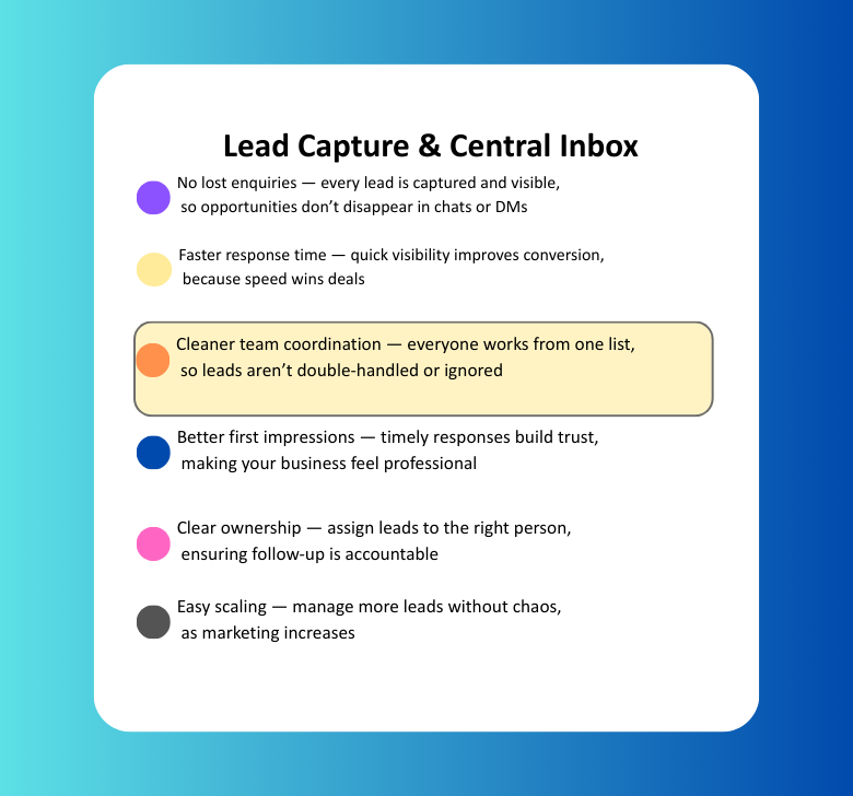 Capture, qualify, and track enquiries from first contact to close—so you respond faster and convert more deals.