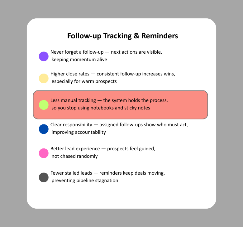 Track next steps so leads don’t go cold and follow-up becomes consistent.