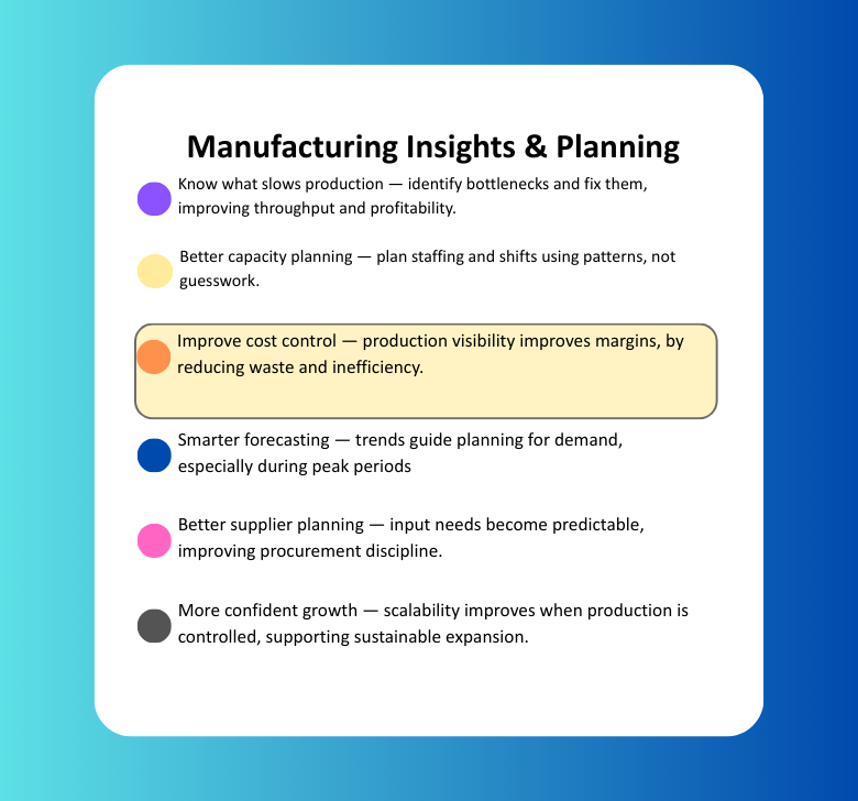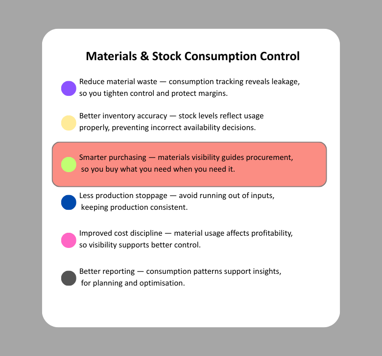 Track production flow and materials so output is predictable, waste is reduced, and inventory stays accurate.