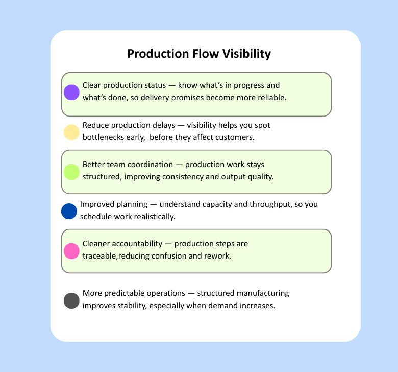 Track production progress so you know what’s being made, what’s delayed, and what’s ready.
